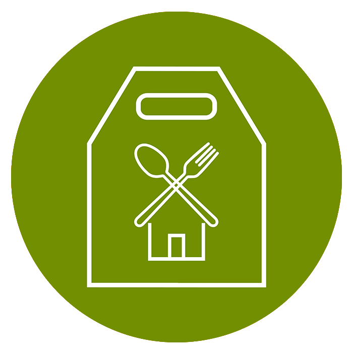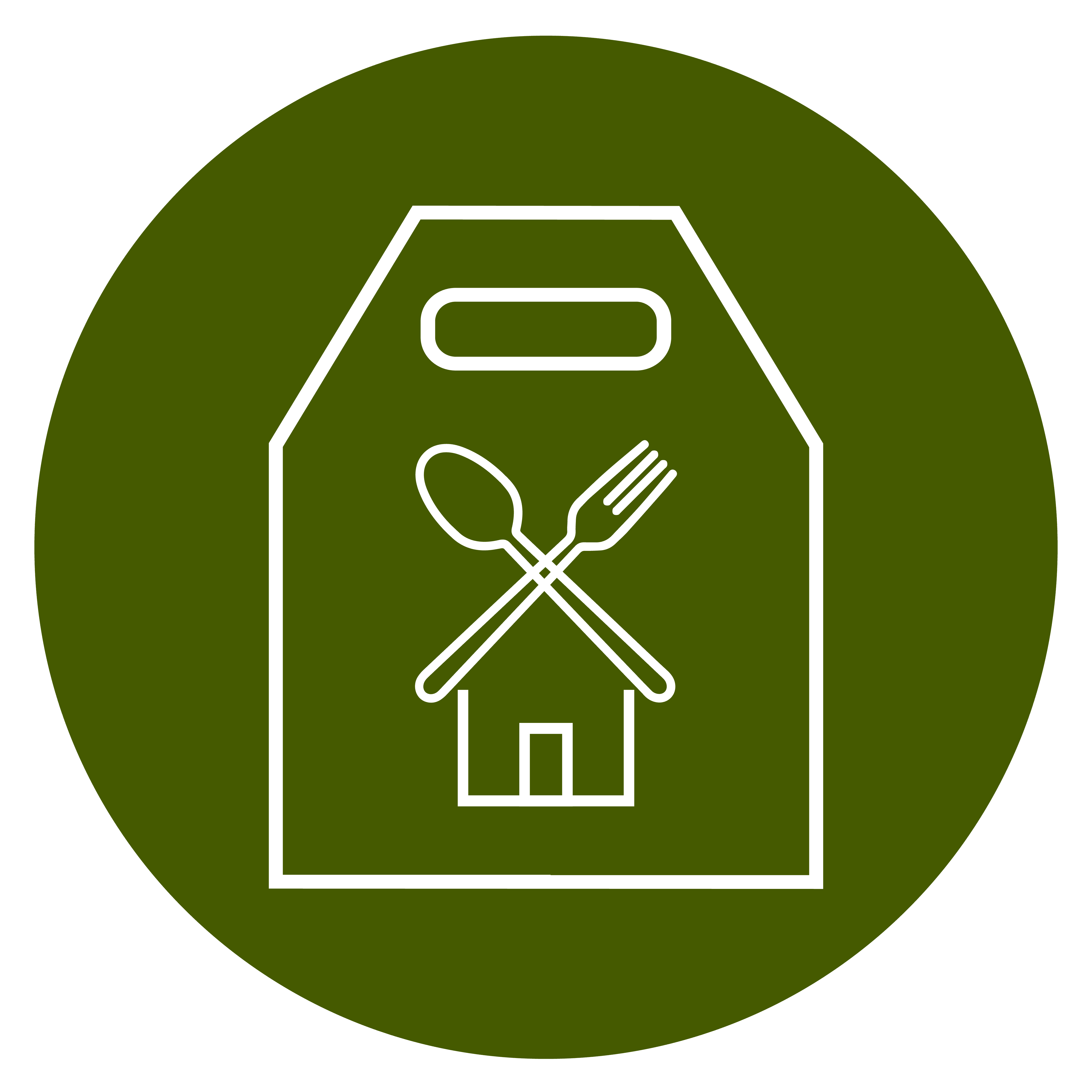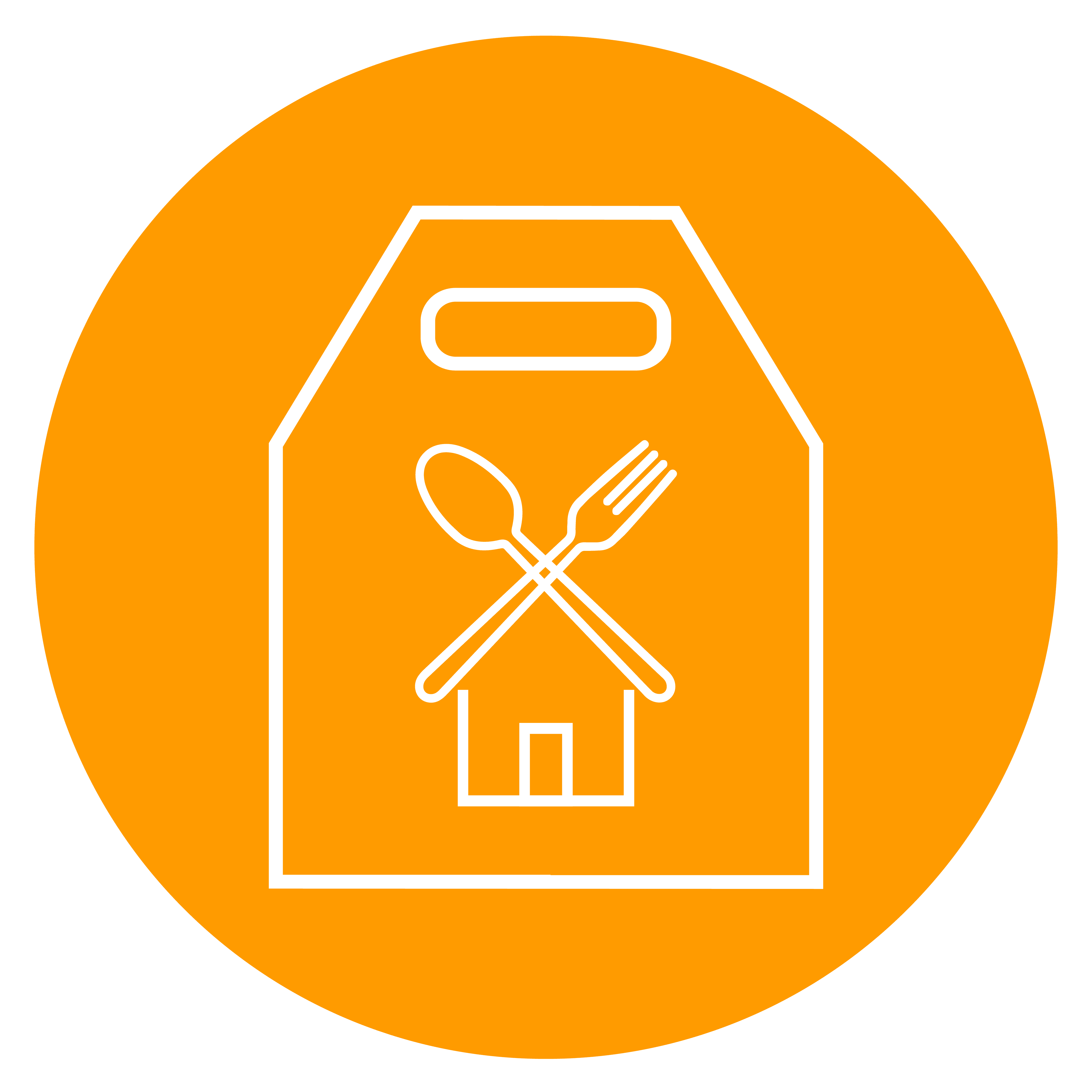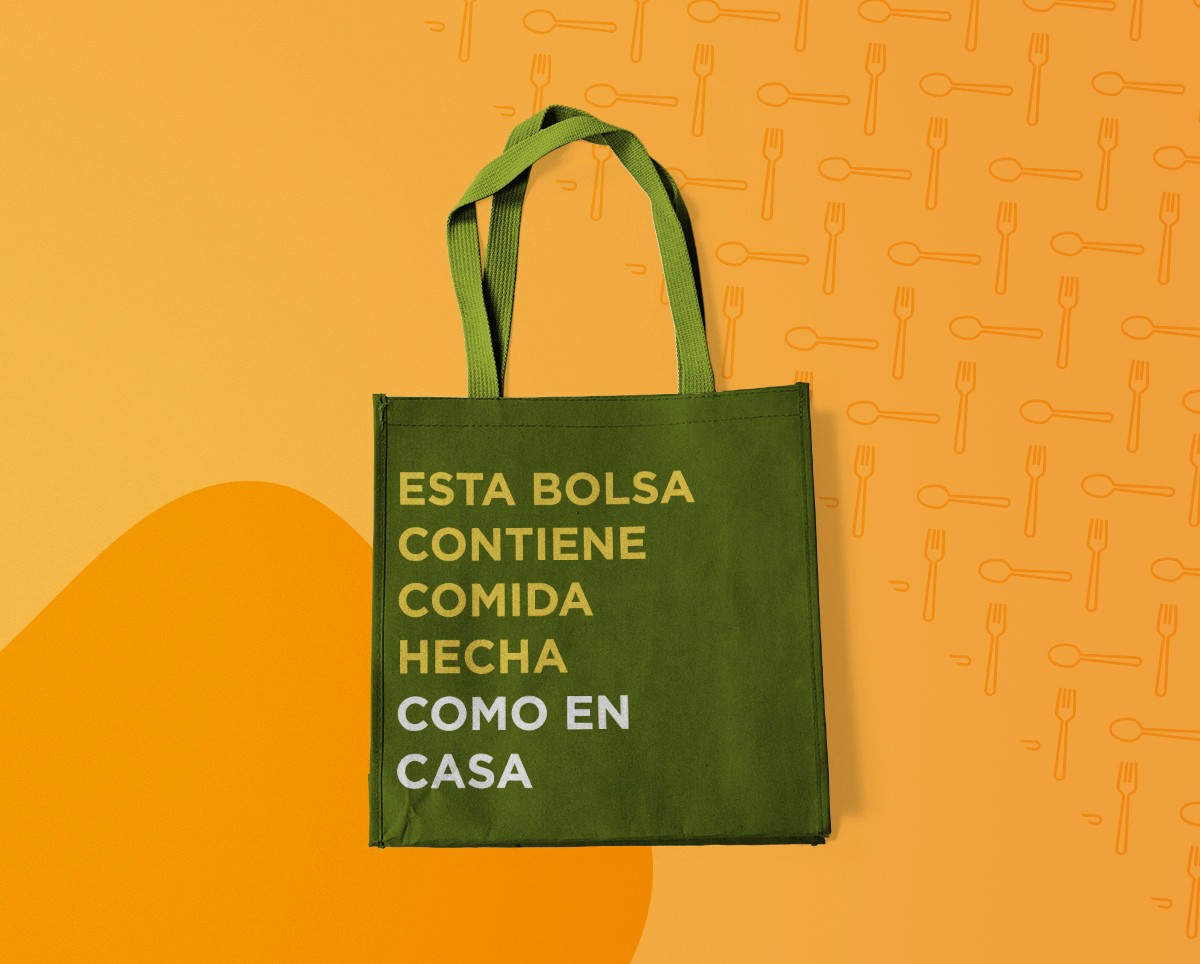 🍋 Imagotipo: se compone de un icono resultado de bolsa (take away) + cubiertos (comida) + casa, siendo así la mezcla de las 3 características principales del servicio. Se acompaña del nombre del emprendimiento en la parte de abajo. Esta versión se considera la oficial.