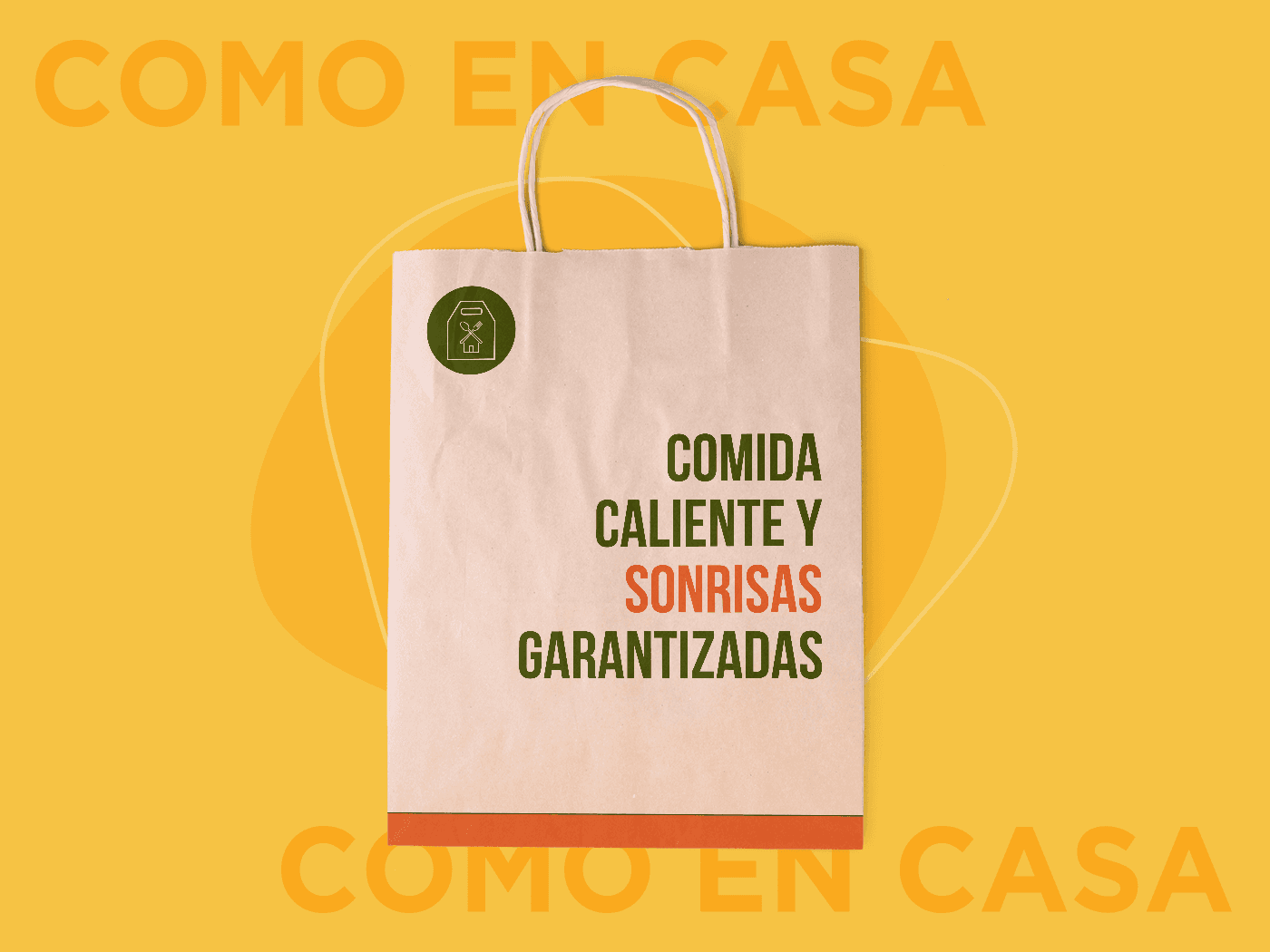 En Como en casa existen diferentes materiales a tener en cuenta: los empaques, las bolsas, stickers, papelería, tarjetas de fidelidad, entre otros.