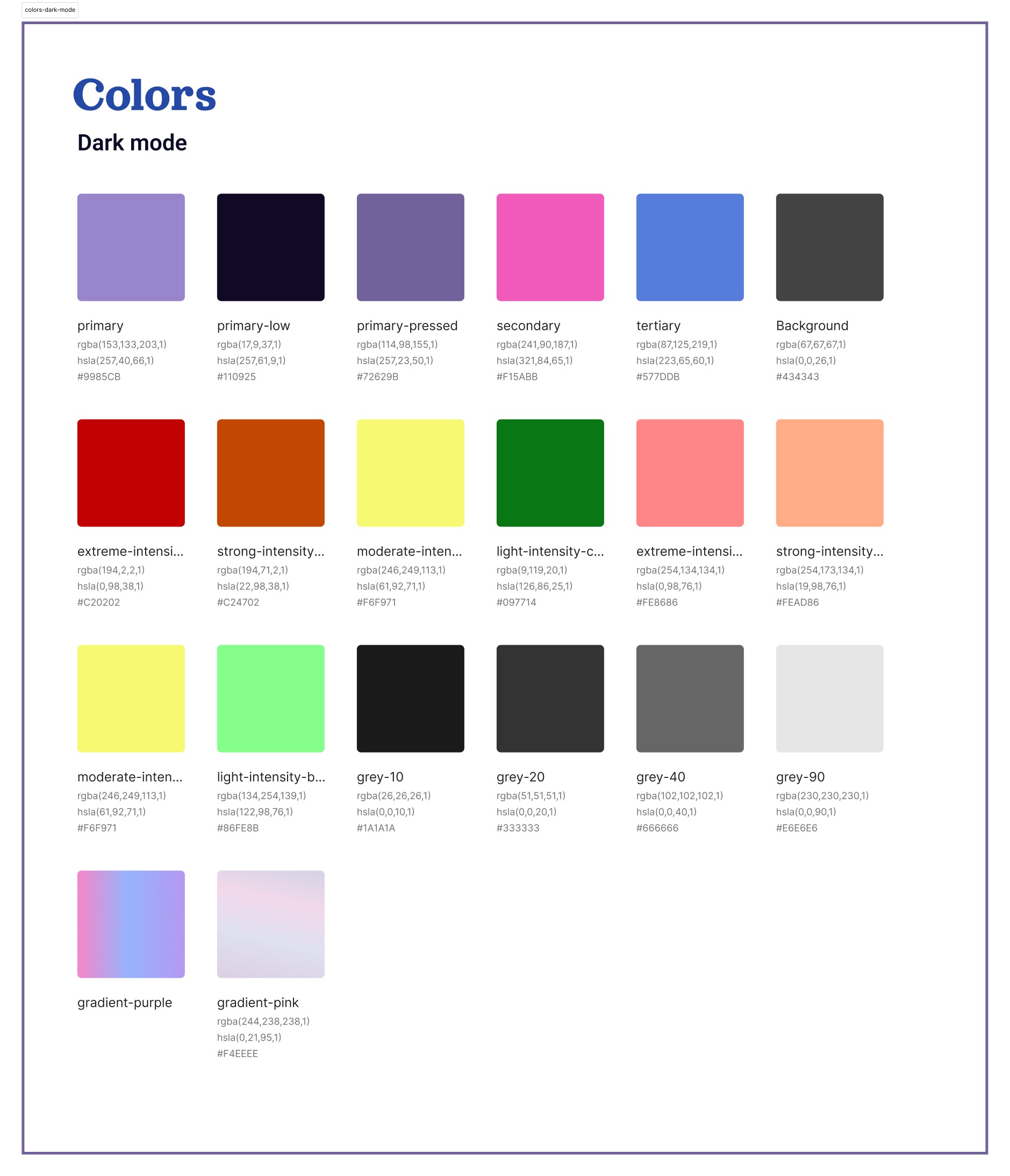Una vez completada esta paleta de colores, se generó una versión para el dark-mode.