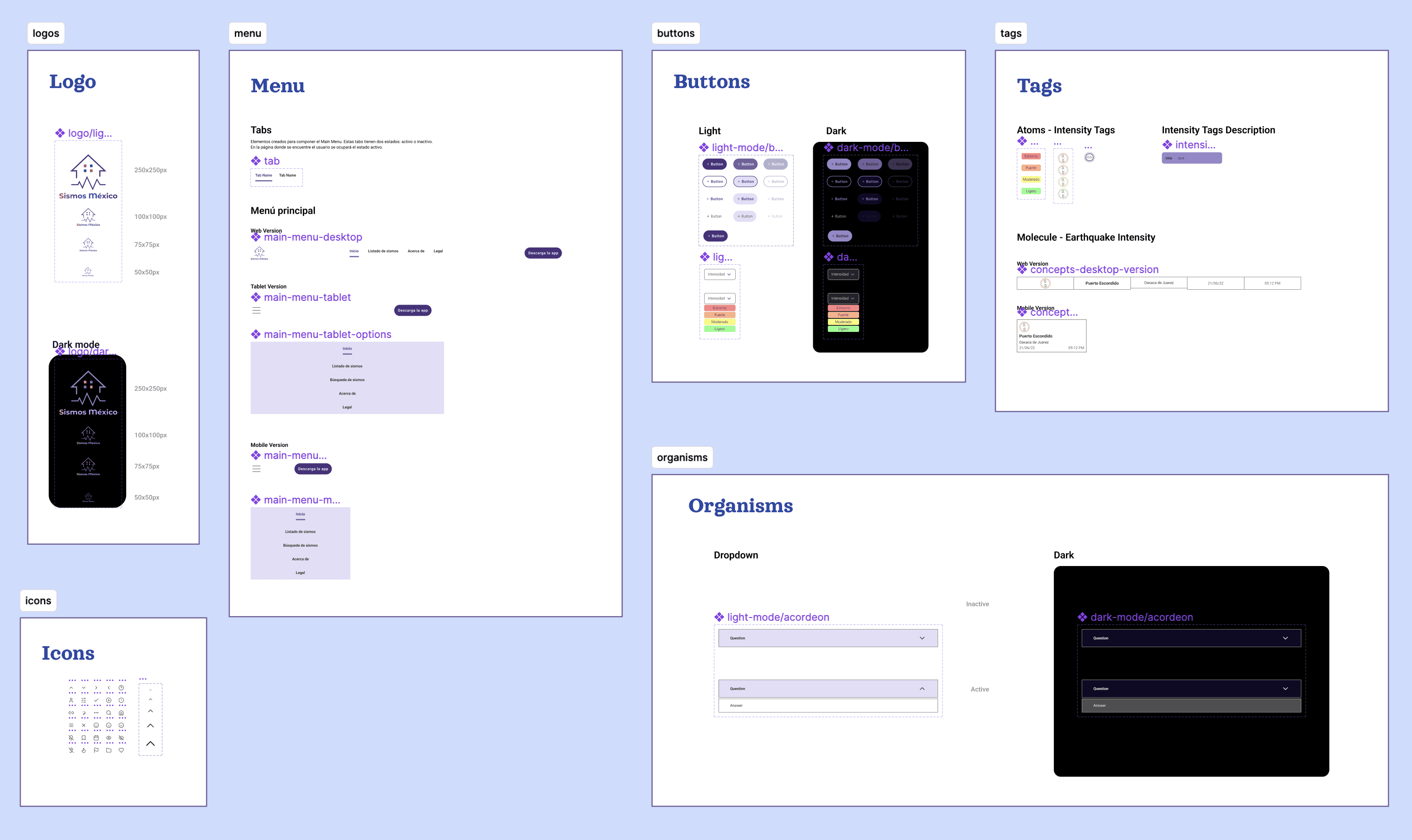 Se desarrollaron dos conjuntos de colores: uno vinculado directamente con la identidad de la marca y otro centrado en las necesidades específicas del proyecto, como la asignación de un color para cada nivel de intensidad de los sismos.