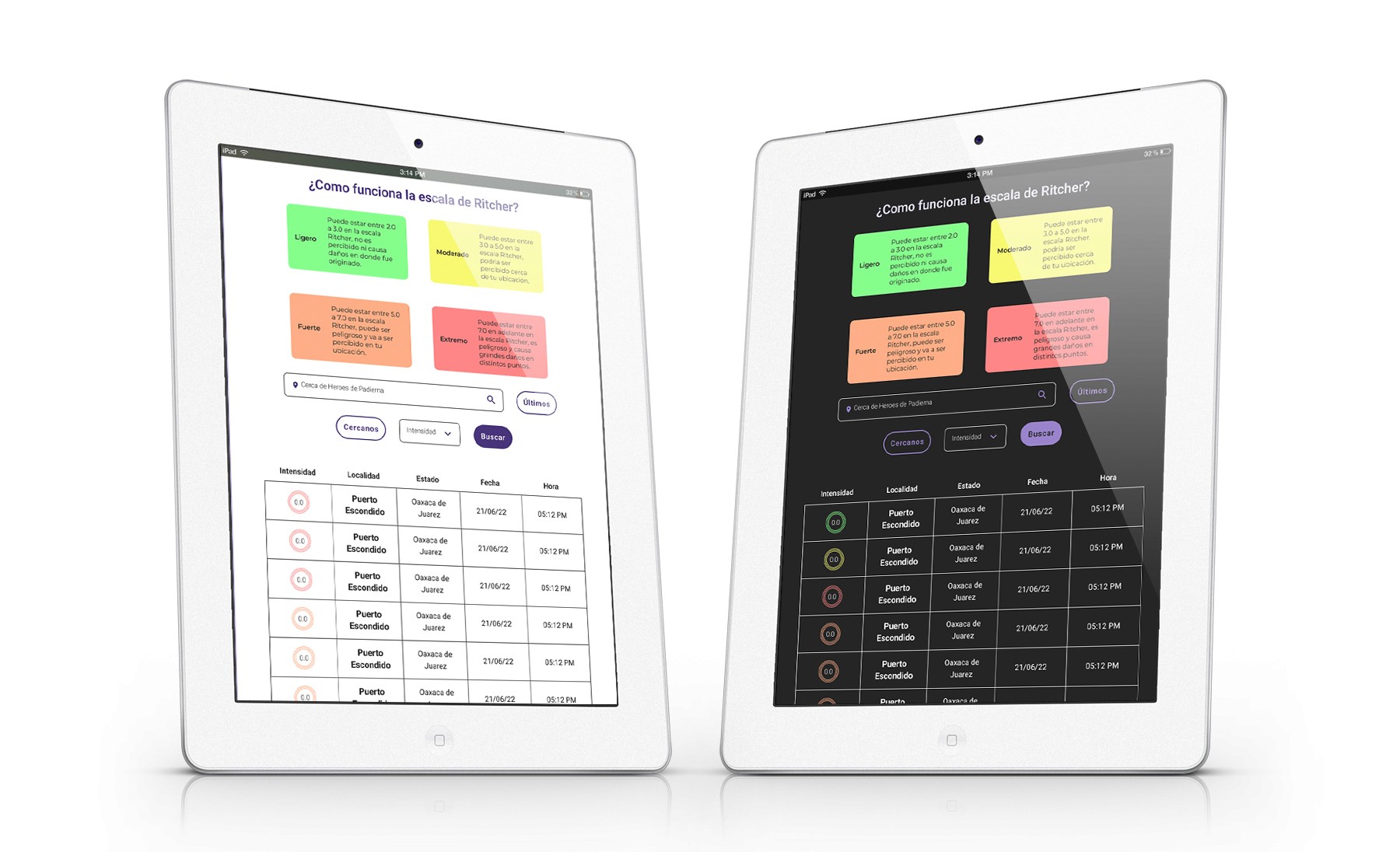 Vista en iPad de las versiones light y dark