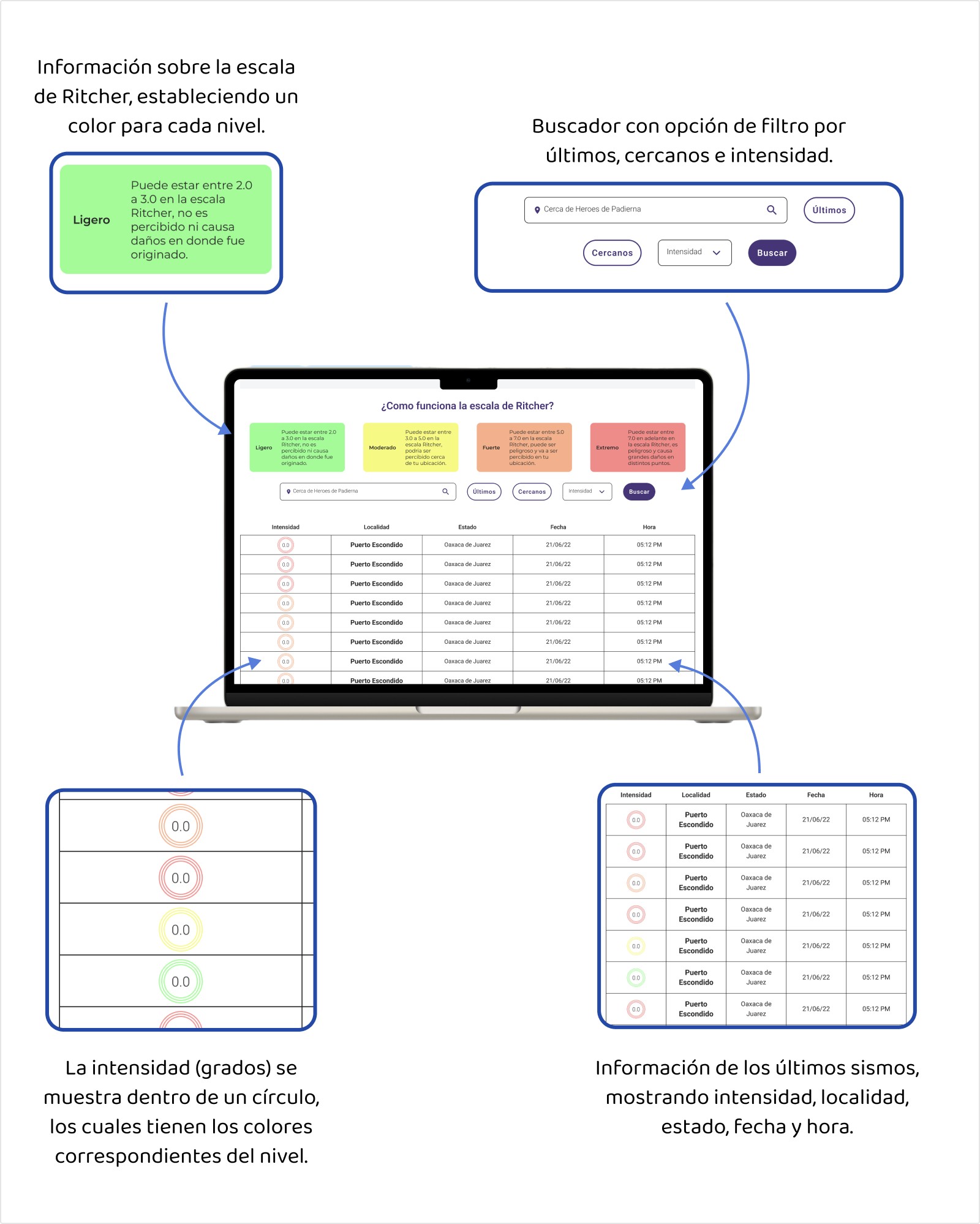 Sismos México tiene como objetivo difundir y condensar la información acerca de estos eventos, proporcionando una categorización basada en su magnitud, fecha y proximidad geográfica al usuario.