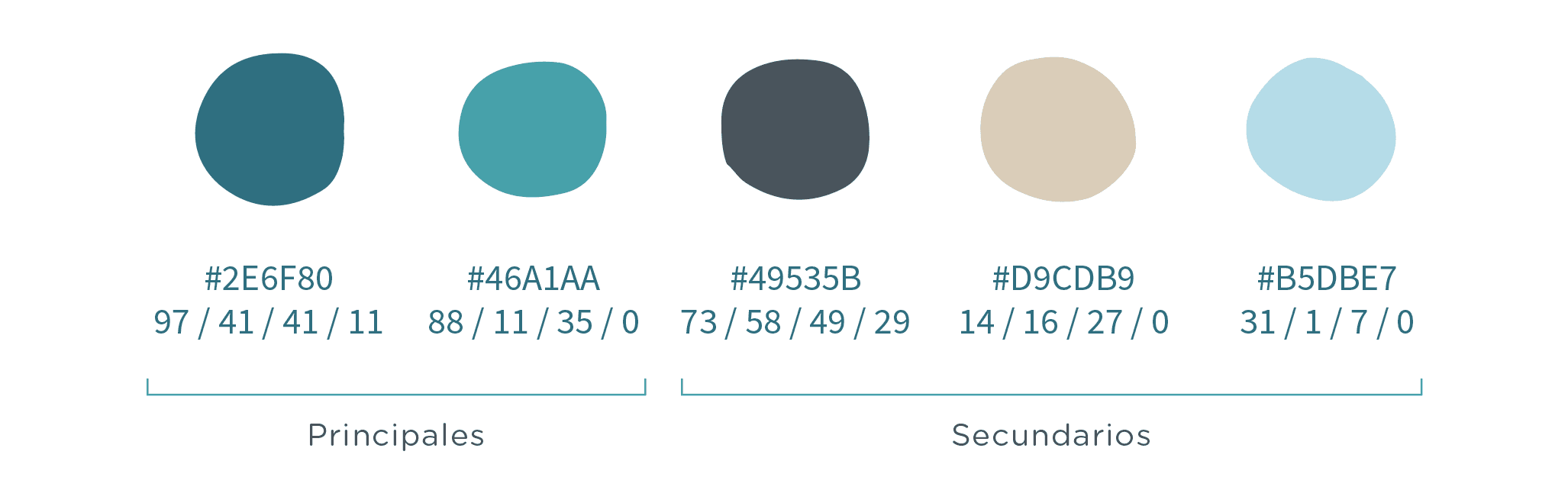 La elección del nombre "Turquesa" proporcionó una clara dirección para la creación de nuestra paleta de colores. Inicialmente, nos centramos en dos tonos principales de turquesa: uno profundo y enérgico, y otro vibrante y refrescante. A partir de esta base, incorporamos un tono de azul grisáceo profundo para añadir contraste, un suave beige que evoca la arena de la playa, y un azul claro que aporta un toque de luminosidad y frescura.